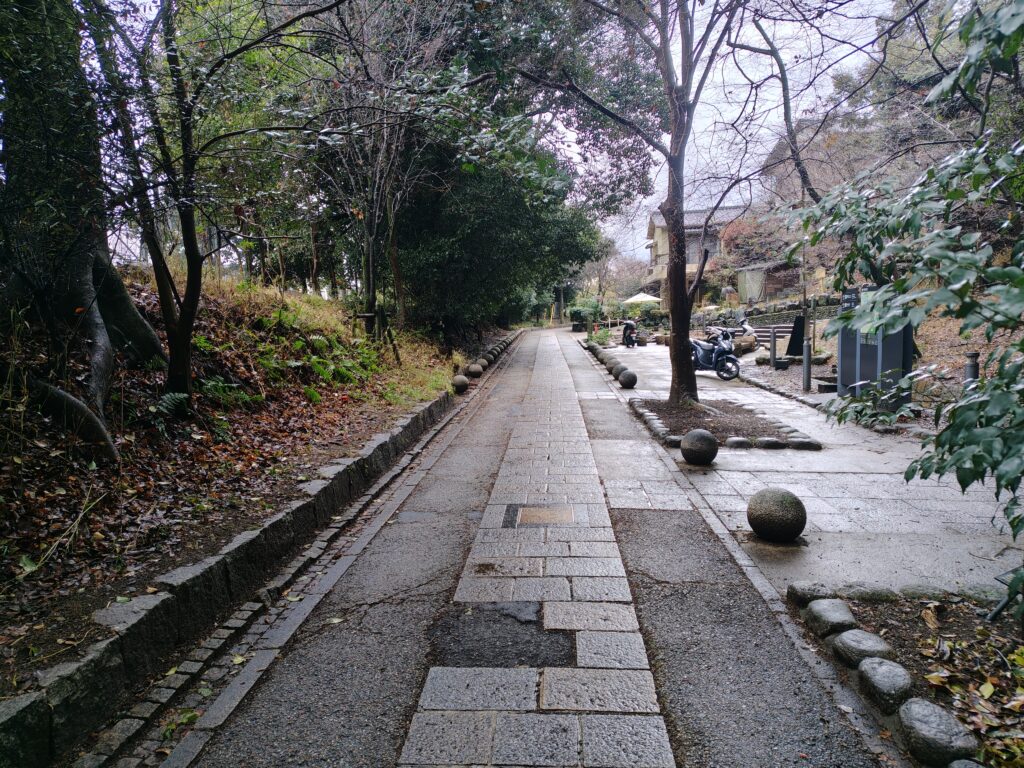 このとき生憎の雨でしたが、短めに着付けていたおかげで、長着は特に濡れることなく散策することができました。