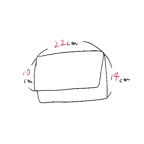 ぴったりにするとキツキツで入らないので、これをもとにゆとりをもったサイズを決めていきます。