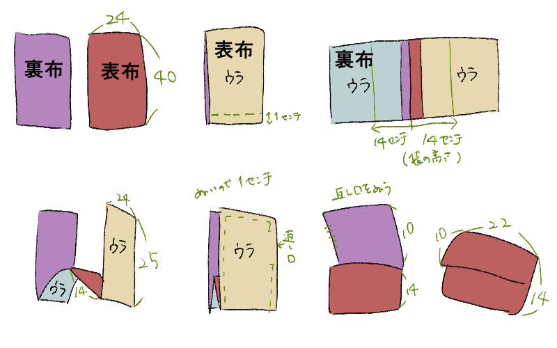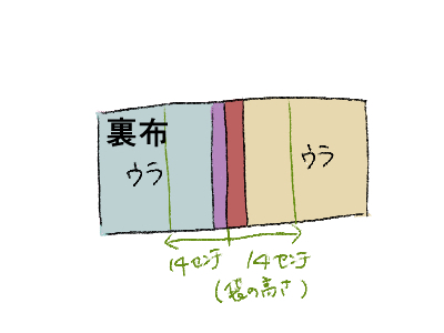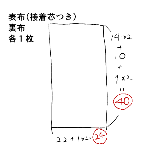 は袋部分と蓋部分の長さを足した上に、両端の縫い代を足した40センチ