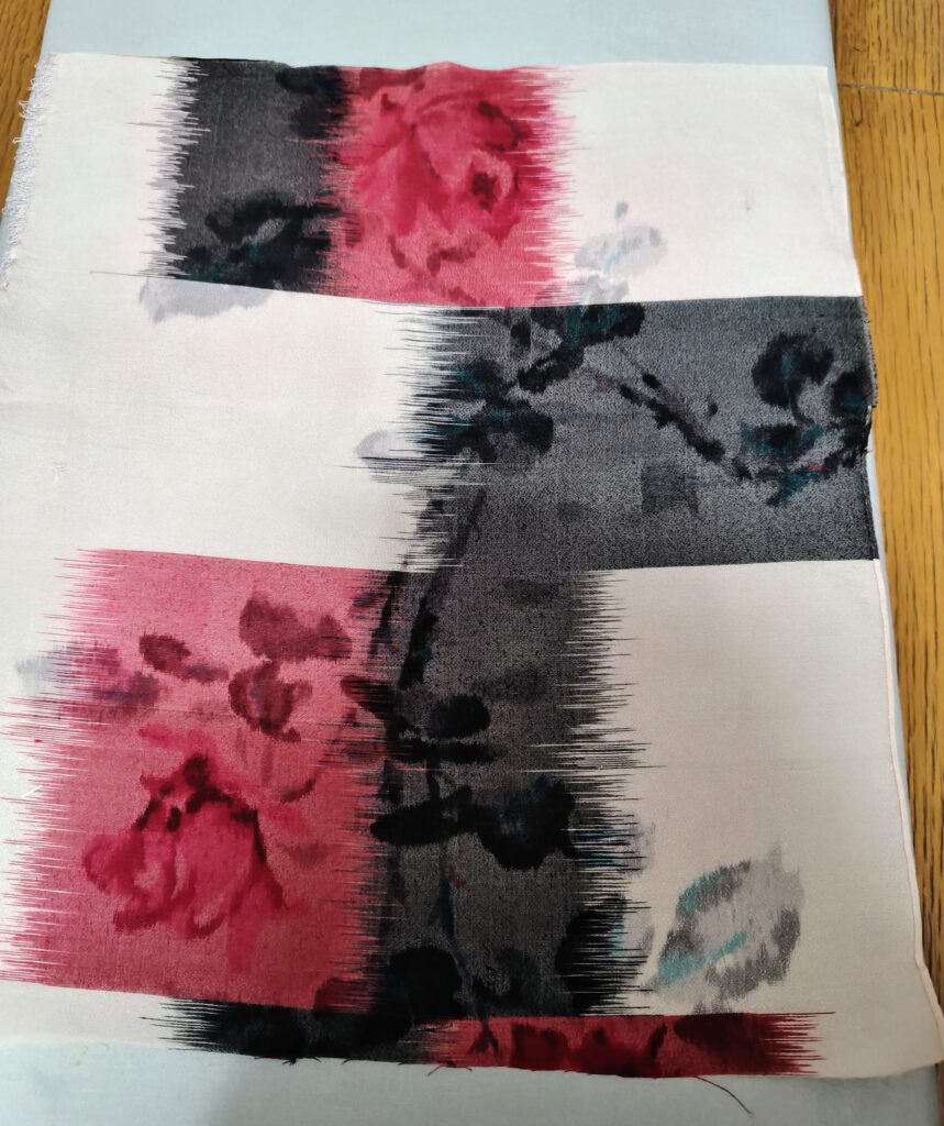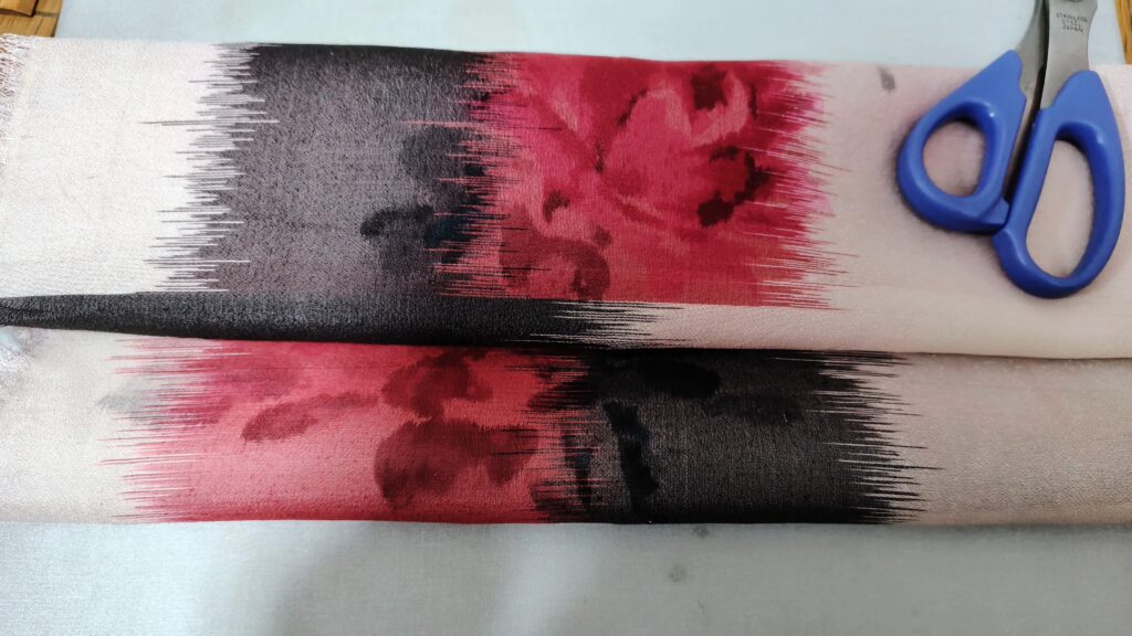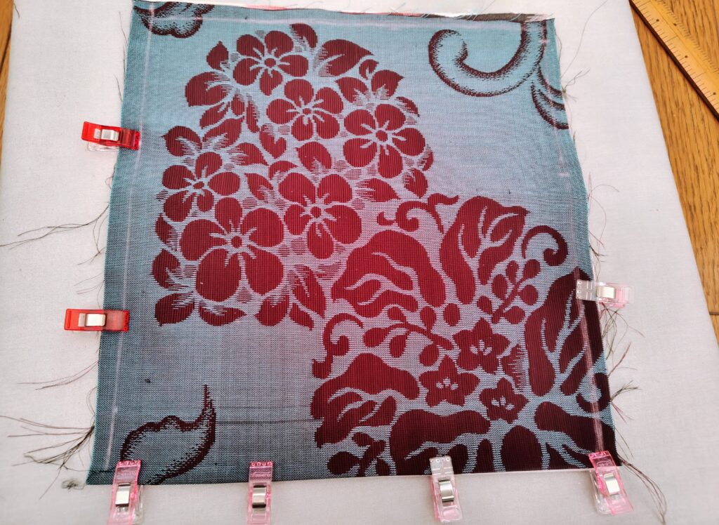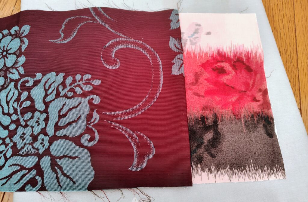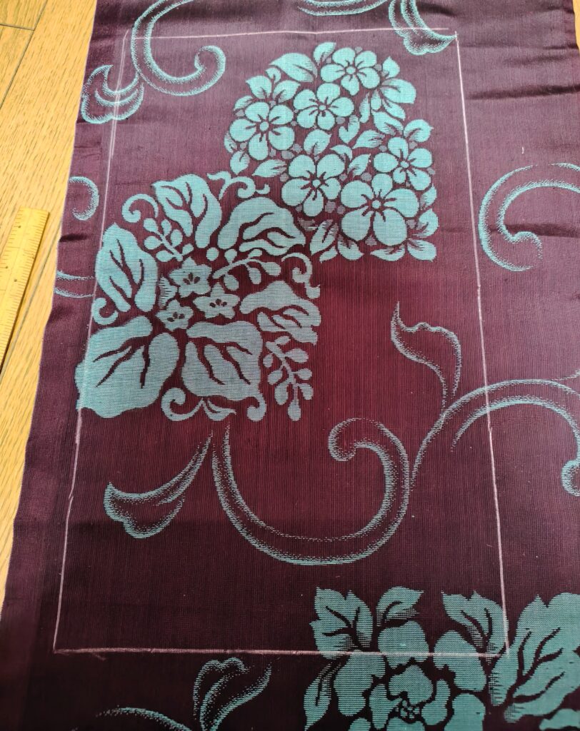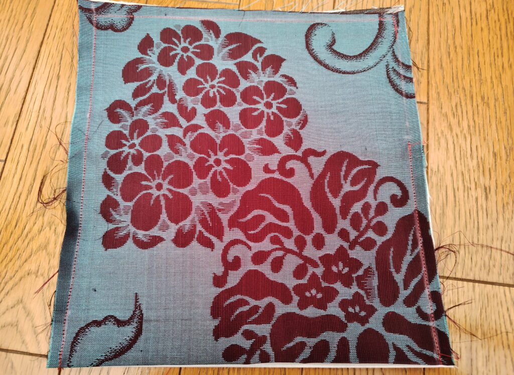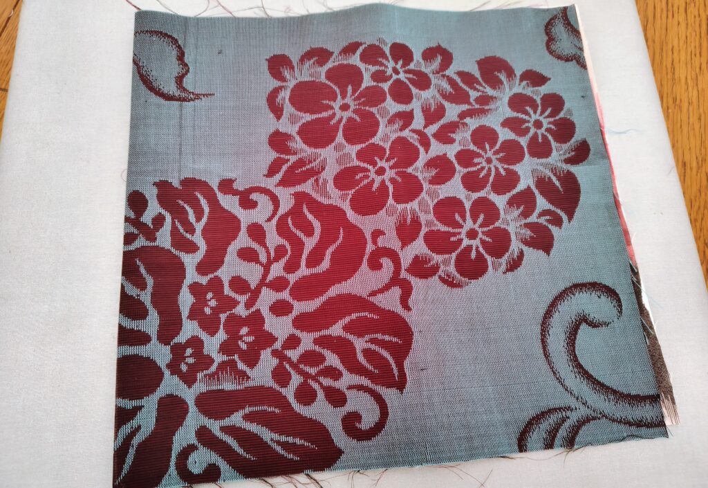 使う生地は以前リバーシブル京袋帯を作ったときにも使った、薔薇柄の夏銘仙です。