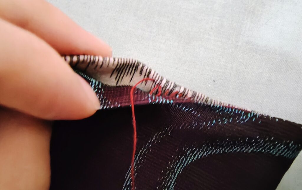 せっかく縫い合わせた糸が切れないように、すこしずつ丁寧にひっくり返してね